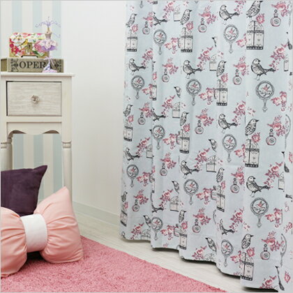 素材ポリエステル100%フック90mmアジャスター付属品共生地タッセル生地厚原産国made in Japanコメントailesエール小鳥や花のイラストを散りばめたアクセントの北欧カーテン。